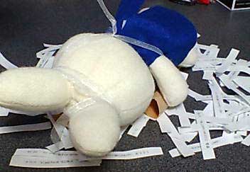 やおろず発売記念に、10名様に「サインじゃないよ落書きだから! びっしり落書きしただけだから! 絵はいっぱい描くけどサインは絶対しないから!」本をプレゼントすることになりました。 ありがたいことにたくさんの応募を頂きまして、当選確率17倍。本日はその中から抽選を行います。 ![]() とりあえずお名前を印字して、小さく切り分けてみました。 ![]() 初期ミッフィーを改造して作られたウサフィ人形に抽選してもらいます。 どうやるのかというと…… ![]() ヒモで縛ってつるし上げてガムテープを貼っつけました。 見えませんが、耳をぐるぐる縛って背中に回しています。 これで準備は完了だ。行けっ、ウサフィ! ![]() バシャーン。 ![]() 「う、うう……これでいいですか」 よし、よくやった! 帰っていいぞ!(ナルスターボールの中に) でも12枚取れていたので、目を閉じてシャッフルの後に2枚外しました。 というわけで、当選した10名様はこちら!(順不同・敬称略) あいれす 発送済 たかなし 発送済 ima 発送済 ムラサキ 発送済 茜 発送済 ひつぎ 発送済 後輪パンク02 発送済 ピーコくつわむし バジル佐藤 麻央 (※以上の三名様への発送が遅れております。申し訳ありません! もうしばらくお待ちください) ![]() ちなみに落書きの内容はこんな感じ。 チキンハートなので本の中にはあまり落書きできませんでした。その代わりにカバーの裏が無法地帯になりますよ。製作に携わってくださった皆様ごめんなさい。(物を粗末にするなと育てられてきたというのに!) 「やおろず」情報ページ |